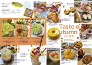 かぼちゃや栗、さつまいもなど、様々な秋の味覚の商品など情報満載したパンフレットです。