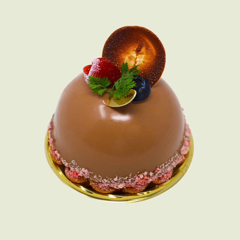 サクサクタルトの上に3種のベリーのゼリーをまん中に入れたミルクチョコムースのケーキです。